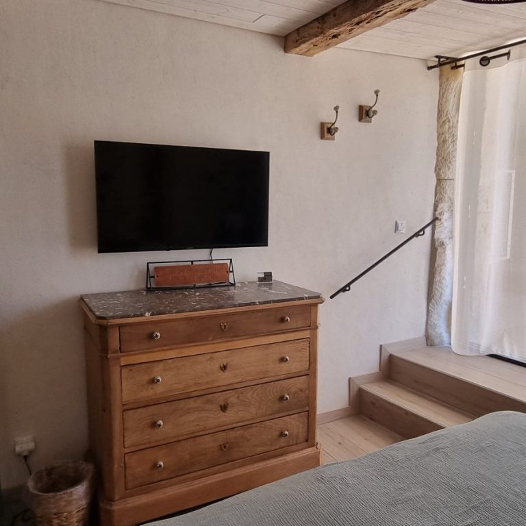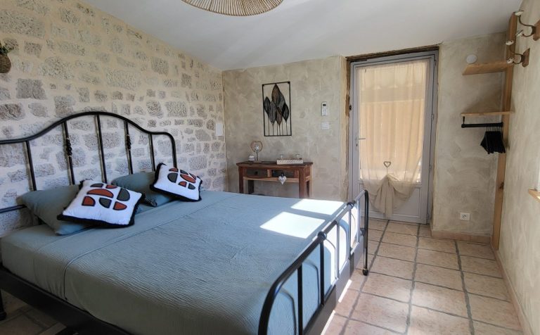 Bienvenue dans la chambre Moca, accès indépendant par un escalier en pierre.